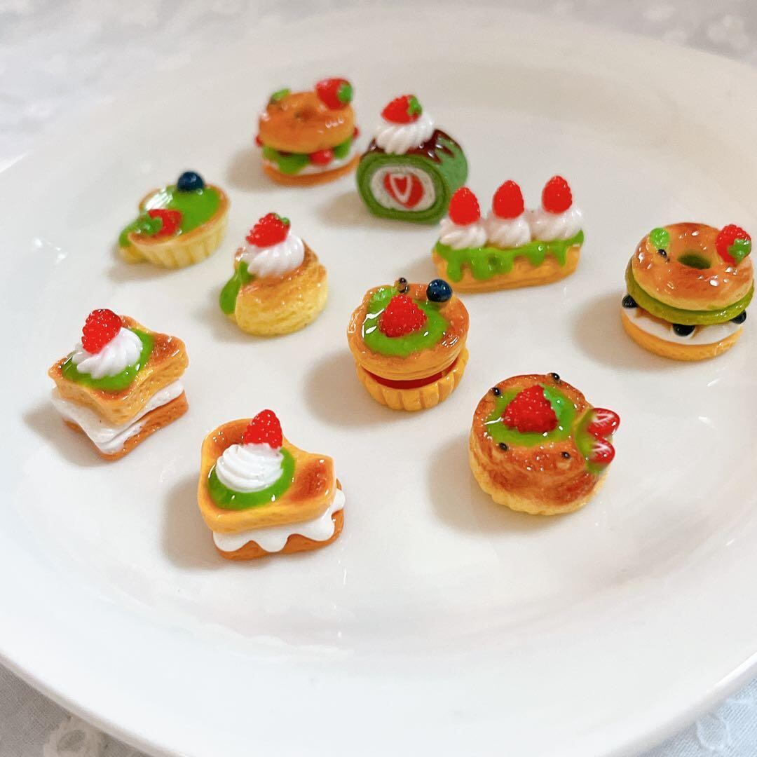 【1個セット】デコレーションパーツ ミニチュア パン ケーキ 抹茶 ガチャ詰め