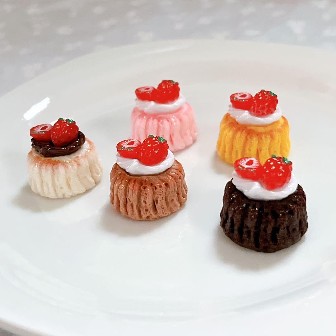【2個セット】デコレーションパーツ ミニチュア ガチャ詰め ケーキ いちご 食べ物 イチゴ