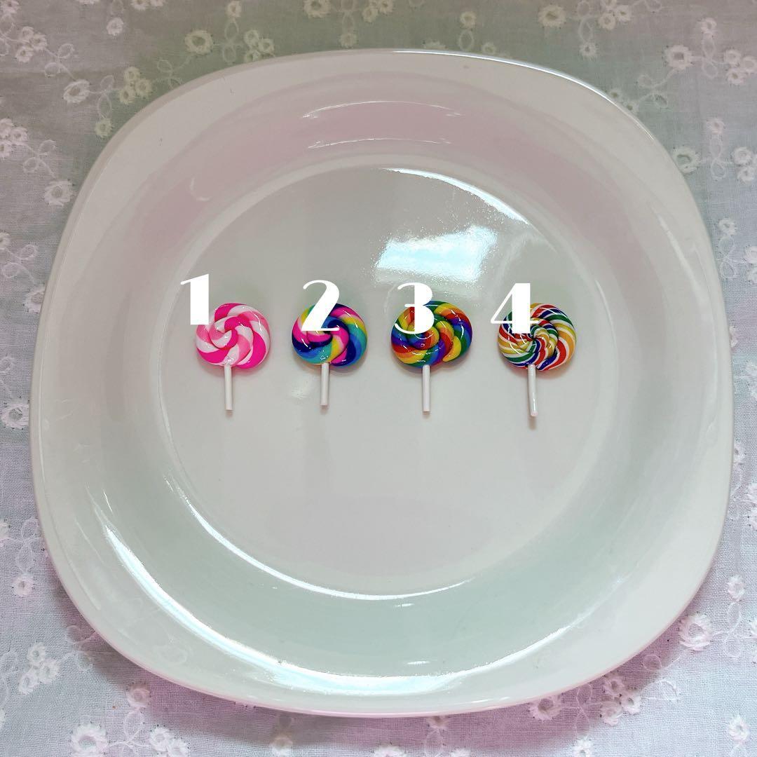カラフルキャンディ ① ② ③ ④ 1つ30円 ※スティック部分が細いので取り扱い注意してください こちらは海外製品になります。インク飛び、汚れや小傷がある場合がございます。 ひどいものは検品時に省いていますがご理解の上、ご購入下さいますようお願い致します。 デコパーツ ホイップデコ 硬貨ケースデコ アクセサリー ハンドメイド カボション ゆめかわ まとめ売り 0