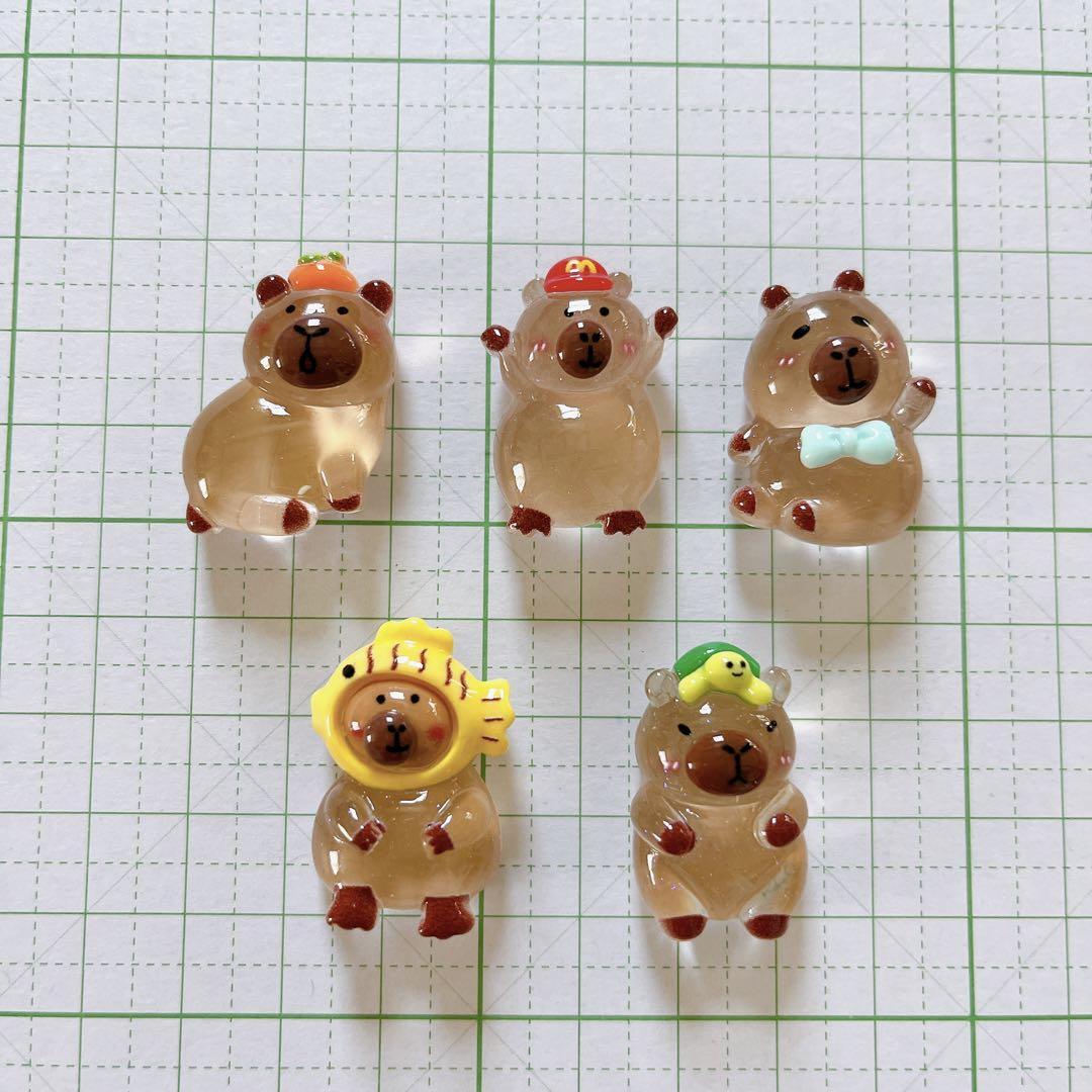 【2個セット】デコパーツ ハンドメイド クリア カピパラ アニマル デコパ